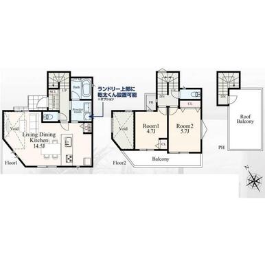 | 間取り(内訳) | 2LDK(洋5.7/4.7LDK14.5) | 建物面積 | 68.76㎡ |